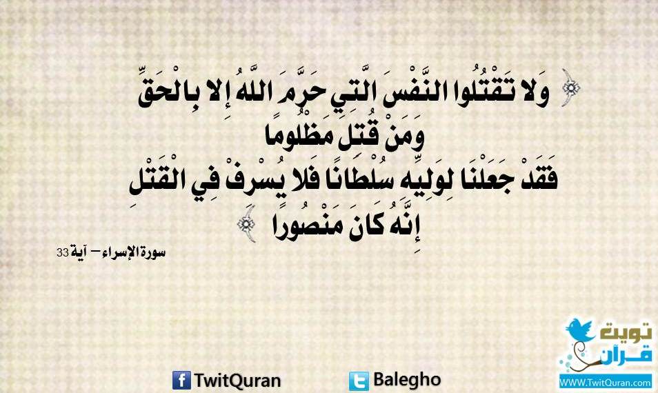 حـمدي القرني On Twitter ولا تقتلوا النفس التي حرم اللـه إلا بالحق ومن قتل مظلوما فقد جعلنا لوليه سلطانا فلا يسرف في القتل إنه كان منصورا Https T Co Isn1hekriy